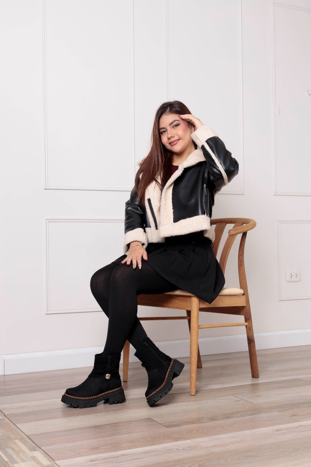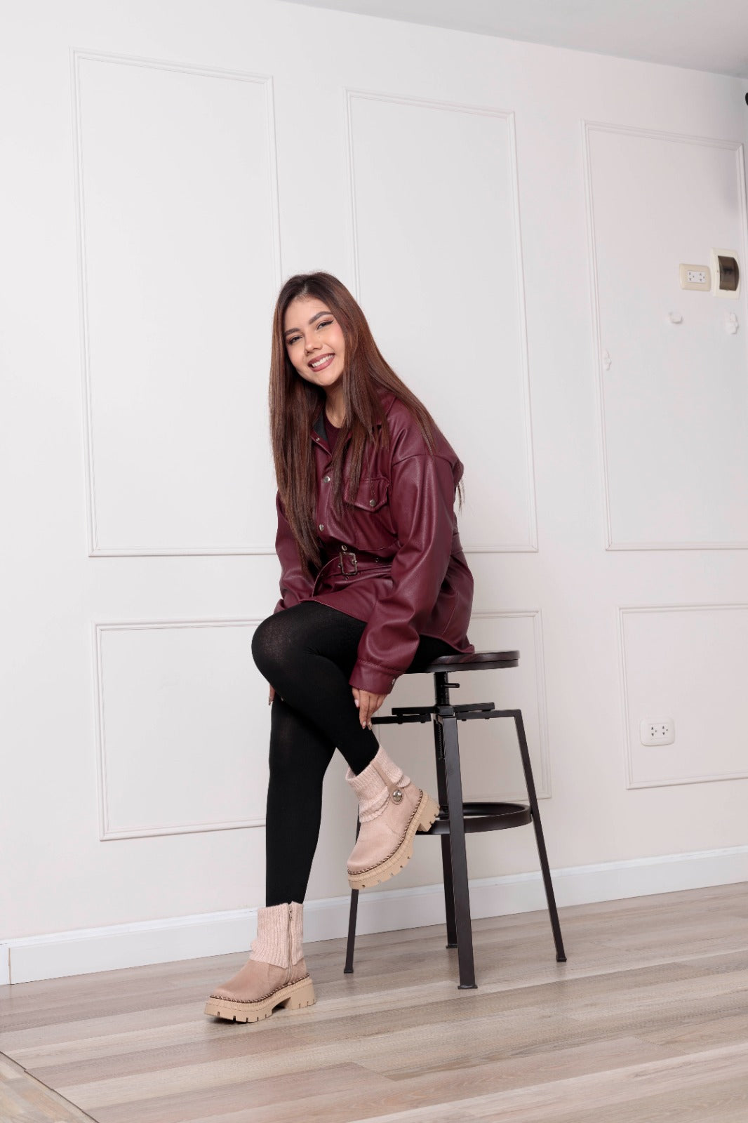 Un estilo pantubota que combina abrigo y tendencia. Su diseño envolvente brinda comodidad y calidez, mientras su look moderno lo convierte en la opción ideal para destacar en esta temporada.