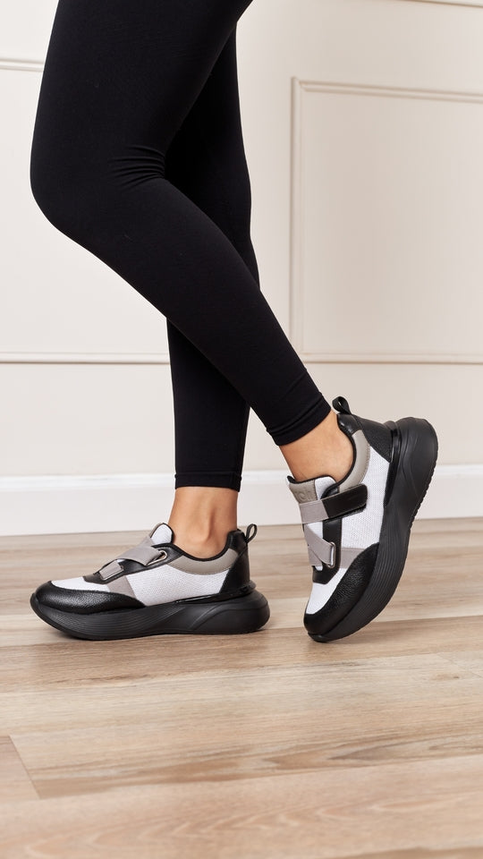 Con elástico pega pega que se adapta a todo tipo de pie, práctico, cómodo y fácil de calzar