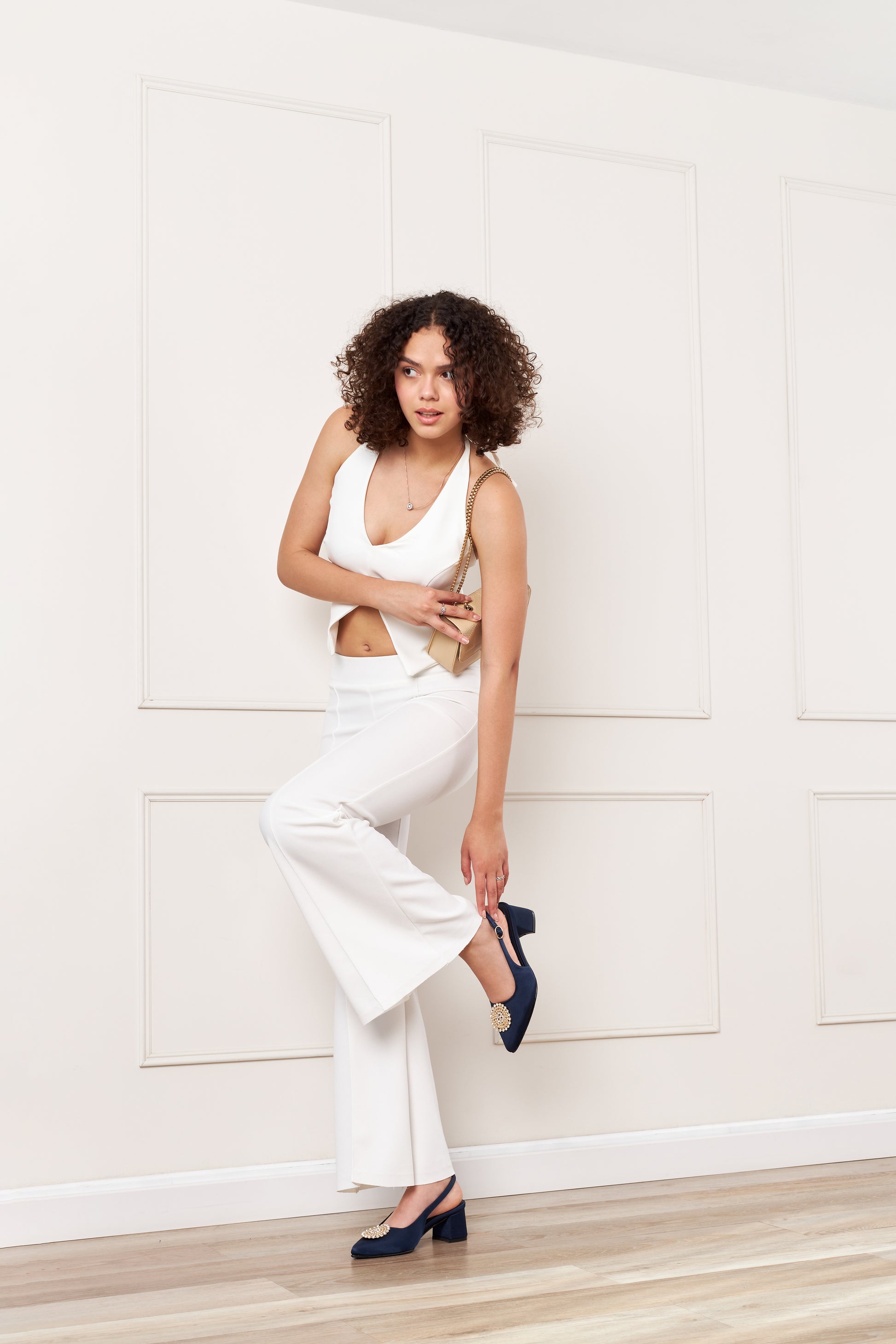 Un diseño glamuroso que roba miradas. Su detalle en pedrería añade el toque perfecto de brillo y sofisticación, ideal para realzar tus outfits y destacar en cada ocasión especial.